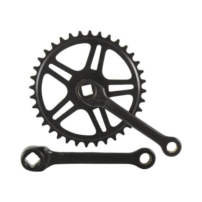 Kurbelsatz 36T Vinty 1/8" vierkantig 130mm - schwarz Marke: Vinty Anzahl der Gänge: Singlespeed Material: Stahl Anzahl der Zähne: 36T Kurbellänge: 130 mm Geeignet für Kettengröße: 1/2 x 1/8 Zoll Farbe: schwarz