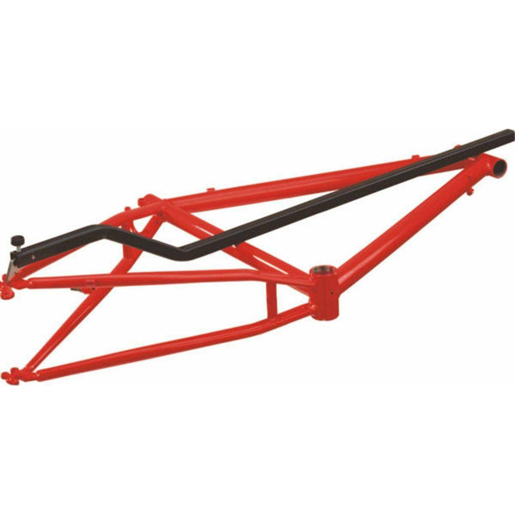 Das Rahmenzentrierwerkzeug zeigt die Ausrichtung von Steuerrohr, Sitzrohr und Ausfallende an. Setzen Sie das Werkzeug auf das Ausfallende und vergleichen Sie den Abstand mit dem Ausfallende auf der anderen Seite. Wenn beide Ausfallenden den gleichen Abstand voneinander haben, ist der Rahmen zentriert.