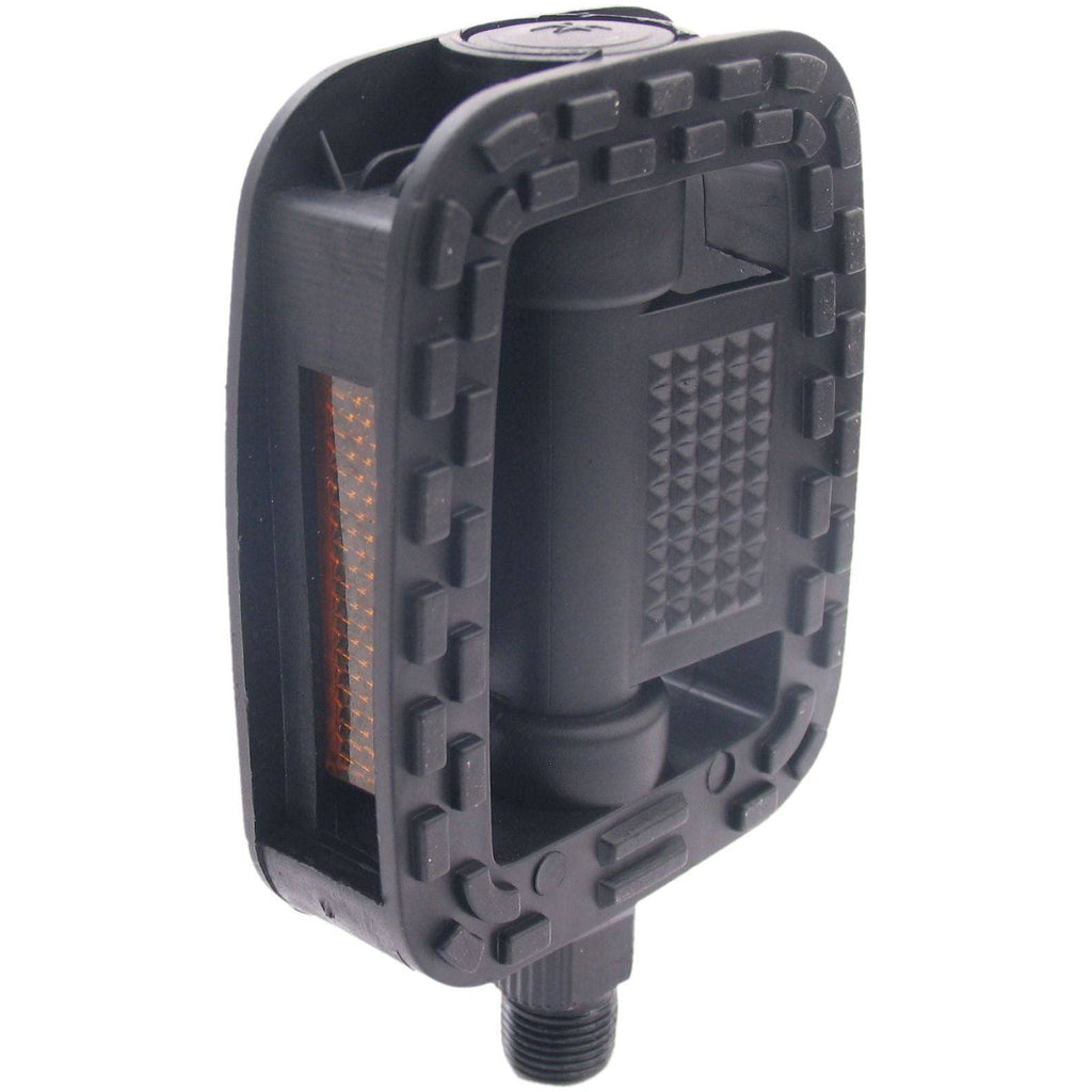Die Edge Comfort Anti-Rutsch-Pedale eignen sich für fast jedes Fahrrad, sind aber besonders beliebt bei City-, Trekking- und E-Bike-Fahrrädern. Diese schwarzen Pedale sind mit Reflektoren und einer schwarzen Anti-Rutsch-Schicht auf beiden Seiten ausgestattet für zusätzlichen Halt unter allen Bedingungen. Die Pedale können mit einem normalen Pedalschlüssel montiert werden. Für zusätzliche Sicherheit sind die Pedale vorne und hinten mit einem Reflektor ausgestattet, der die Sichtbarkeit im Verkehr erhöht. Spezifikationen: Anti-Rutsch Normales Gewinde - 9/16 Zoll Anwendung: City-, Trekking- und E-Bike-Fahrräder Plattformgröße: 110 x 75 mm Material: Kunststoff Ausgestattet mit Kugellagern Inklusive Reflektor Gewicht: 330 Gramm (pro Paar) Verpackung: pro Paar in Werkstattverpackung
