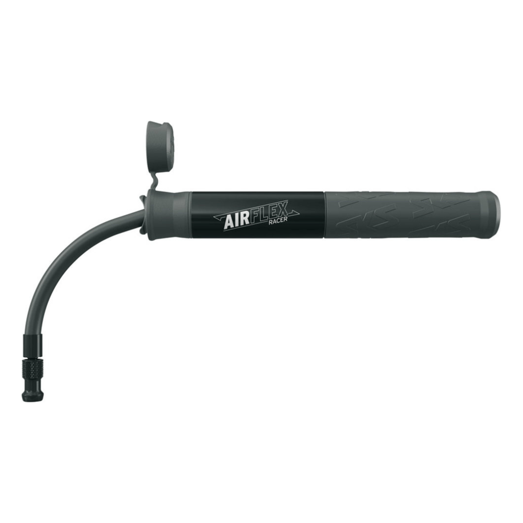 Wo kleine Pumpe Großes leisten kann: Die SKS Airflex Minipumpe macht Pumpen jetzt noch einfacher. Das Geheimnis verbirgt sich unter der griffigen Staubkappe: Im Pumpenrohr verbirgt sich ein langer Schlauch, den du herausziehen und luftdicht auf ein FV/SV-Ventil schrauben kannst. Bis zu 8 bar kannst du aufpumpen. Das schont nicht nur das Ventil, sondern auch deine Armmuskulatur. So wird Pumpen nicht nur angenehm für dein Fahrradventil, sondern auch für deine Armmuskulatur. Der Soft-Compound-Griff und die Griffmulde vorne sorgen für sicheren Halt. Der Materialmix aus Aluminium und Kunststoff-Carbon-Komponenten mit SKS-Logo macht diese leichte Pumpe zum Must-have für designbewusste Biker.
