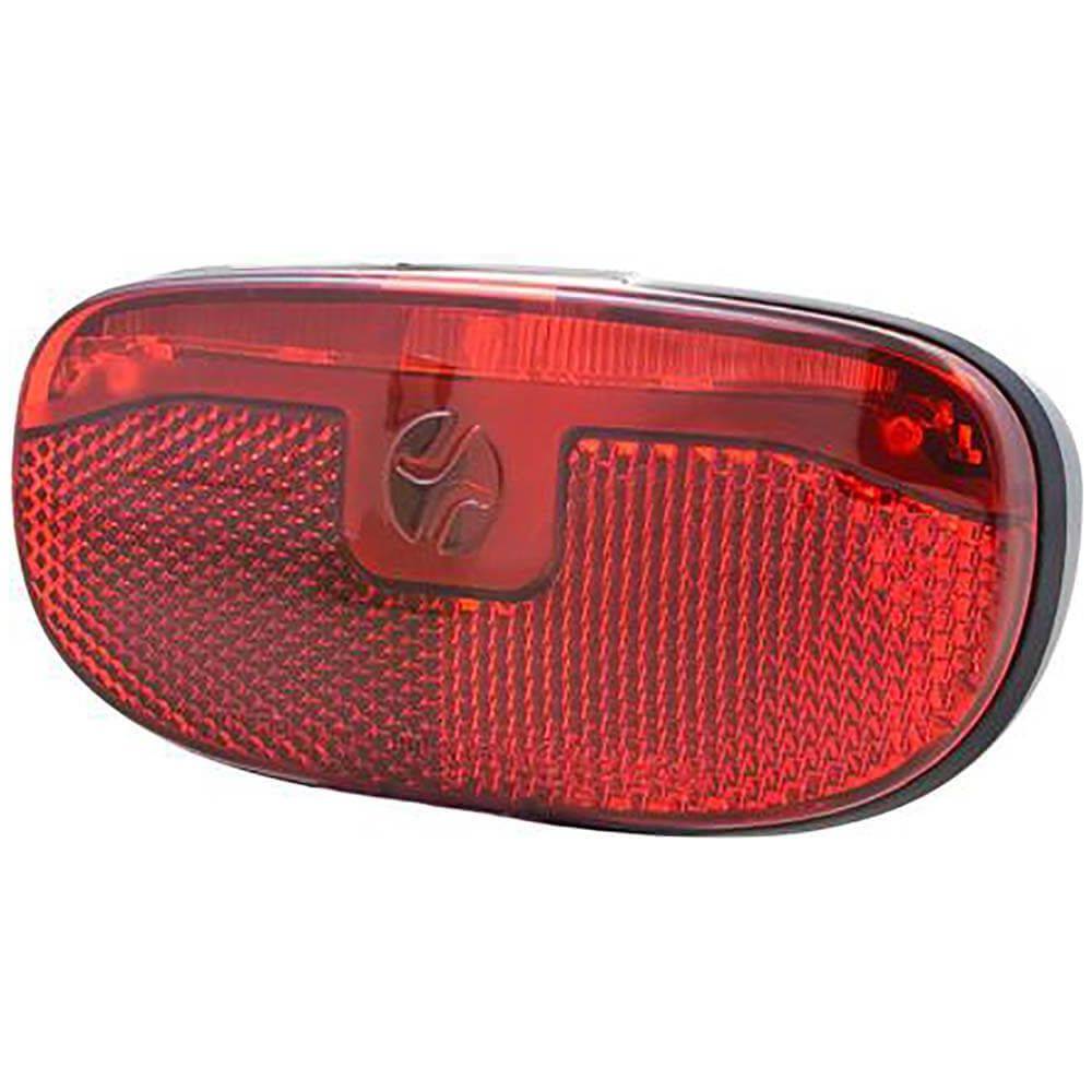 Spanninga Rücklicht DUXO XB, Batterie, Ein-/Aus-Taste, LLT-Technologie (integrierter Lichtleiter für zusätzliche Sichtbarkeit), 1 LED, 2 x AA-Batterien, Batterielebensdauer > 180h, Batterieladeanzeige, Gewicht < 110g, geeignet zur Montage an allen Gepäckträgern mit 50mm oder 80mm Bolzenabstand, deutsche StVZO-Zulassung