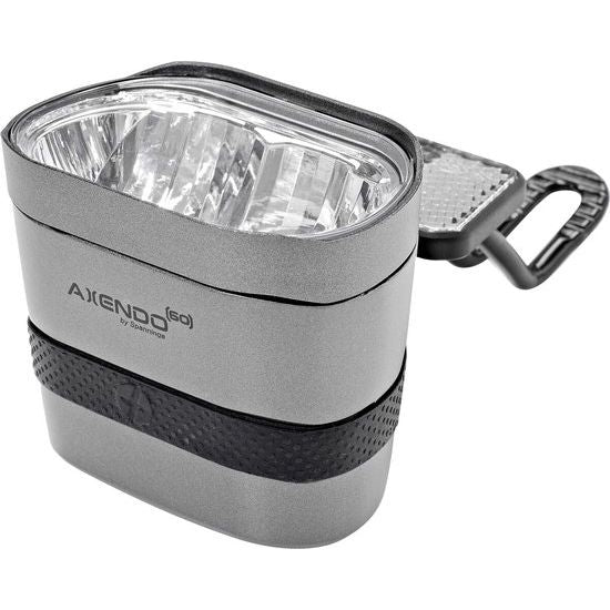 Der Axendo 60 xe ist ein eleganter E-Bike-Scheinwerfer, ausgestattet mit zwei leistungsstarken REBEL ÷ LEDs und einer Lichtleistung von >60 Lux. Seine Optik basiert auf modernster Technologie. Der Scheinwerfer verfügt über eine Edelstahl-Gabelhalterung (inkl. Reflektor) und ist für alle gängigen E-Bikes von 6-36V geeignet. Das robuste Aluminiumgehäuse sorgt für ein luxuriöses Erscheinungsbild.