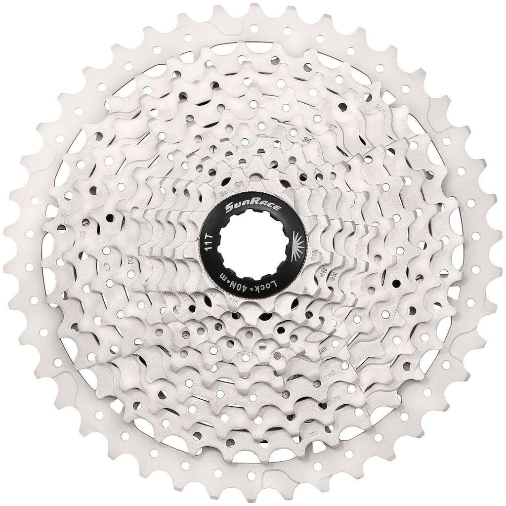 Modell: CSMS3 TAX Gänge: 10 (breite Übersetzung) Funktion: Fluid Drive Plus Verzahnung: 11-40T Zahnkombination: 11-13-15-18-21--24-28-32-36-40 Material: - Spider, Spacer und Abschlussring: Aluminium / schwarz eloxiert - Ritzel: Hi-Tensile Stahl Finish: Metallic Silber Gewicht: 414 Gramm