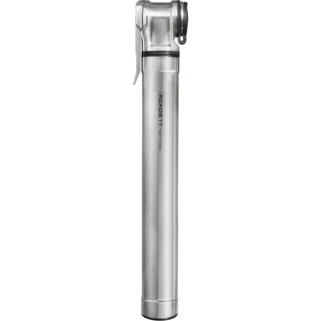 Topeak Roadie TT Minipumpe. Die Roadie TT Twin Turbo ist eine kompakte Minipumpe aus Metall, die ein großes Luftvolumen aus einer großen Außenkammer in eine kleinere Innenkammer presst und so mehr Luft mit höherem Druck in den Reifen pumpt. Das macht das Aufpumpen Ihrer Reifen 50 % schneller und einfacher. Die integrierte Staubkappe hält den Pumpenkopf sauber, während der daumenbedienbare Verriegelungshebel eine dichte Verbindung zum Ventil gewährleistet. Gewicht: 100 g. Volumen pro Hub: 41,4 ccm. Abmessungen: 19,5 x 3,3 x 2,35 cm. Material: Aluminium. Kapazität: 160 psi - 11 bar. Farbe: Silber. TRTT-2S