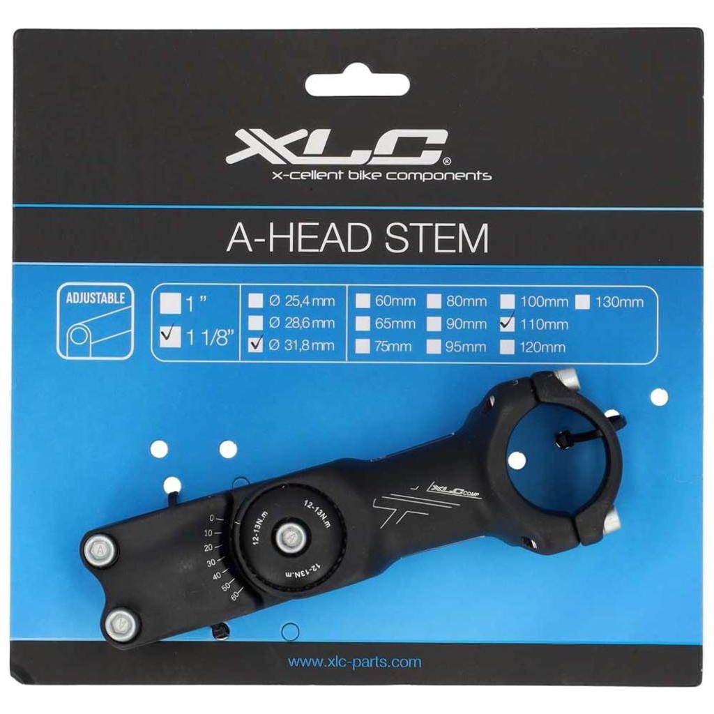 Mit dem Comp ST-T13 hat XLC einen preisgünstigen, winkelverstellbaren Vorbau im Sortiment. Er passt auf 1 1/8 Zoll Gabelschäfte und wird mit einer stabilen 2-Schrauben-Klemmung befestigt. Der Aluminium-Vorbau lässt sich von 0° bis 60° verstellen und ermöglicht so eine individuelle Positionierung.