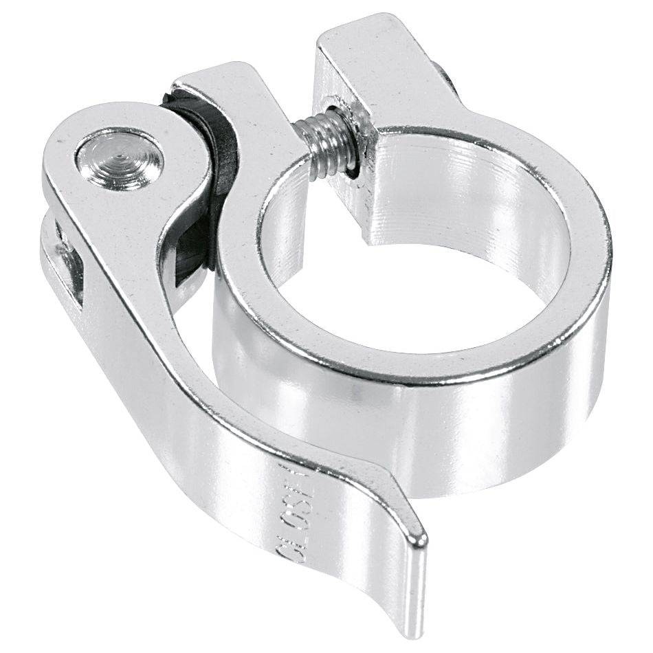 Aluminium-Sattelstützenklemme mit Schnellspanner. Eigenschaften: Innendurchmesser (Außendurchmesser Sattelstütze): 31,8 mm Material: Aluminium Farbe: Silber Gewicht: 45 Gramm Klemmsystem: Schnellspannhebel