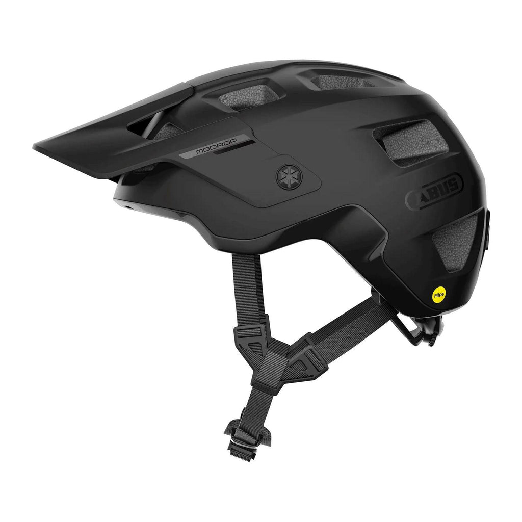 VOOR MEER VEILIGHEID. ABUS MoDrop MIPS voor elk terrein en elke rijstijl laat je altijd meer willen. Deze mountainbikehelm is de beste keus voor hooggebergte, trailtochten of gezellige uitstapjes met het gezin. Het MTB-specifiek verstelsysteem en TriVider riemverdelers bieden extra comfort. Bij het afdalen beschermt het in hoogte verstelbare, schermachtige vizier u tegen hangende takken. Bij een val kan zo ook een directe impact met het gezicht worden voorkomen. . Extra veiligheid biedt u de MIPS-impactbescherming. Deze is bedoeld om de hersenen te beschermen, vooral als het hoofd van de fietser tijdens een val onder een hoek de grond raakt. Hierdoor worden de hersenen blootgesteld aan sterke rotatiebewegingen die tot ernstig hersenletsel kunnen leiden. Bij MIPS is een beweegbare wrijvingsarme schaal in de helm geïntegreerd die rotatie vermindert en het hoofd beter beschermt.