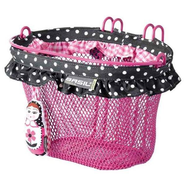 Met de aankoop van een roze Basil Jasmin Baboushka doe jij je dochter een groot plezier. Deze mand van fijnmazig staal is ideaal voor het vervoeren van boodschappen of haar pop en knuffels. Dankzij de roze kleur valt de mand op en is hij de perfecte manier voor het pimpen van een meisjesfiets. De 12-20 inch kinderfietsmand heeft een kleurrijke versierrand en dus is elke fietsrit een feestje. Dankzij de veilige dubbel uitgevoerde stuurhaken, bevestig je de mand eenvoudig voorop een kinderfiets. Daarnaast beschikt de vrolijke mand over een hengsel, dus je dochter neemt haar fietsmand gemakkelijk overal mee naartoe. Is je dochter binnenkort jarig en beschikt ze al over een meisjesfiets? Geef je dochter deze vrolijke roze fietsmand cadeau en laat haar volop genieten van elke fietsrit.