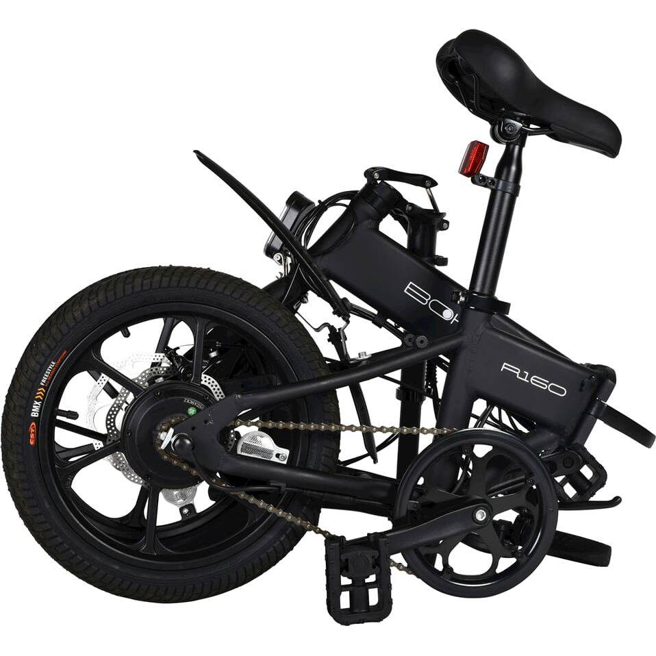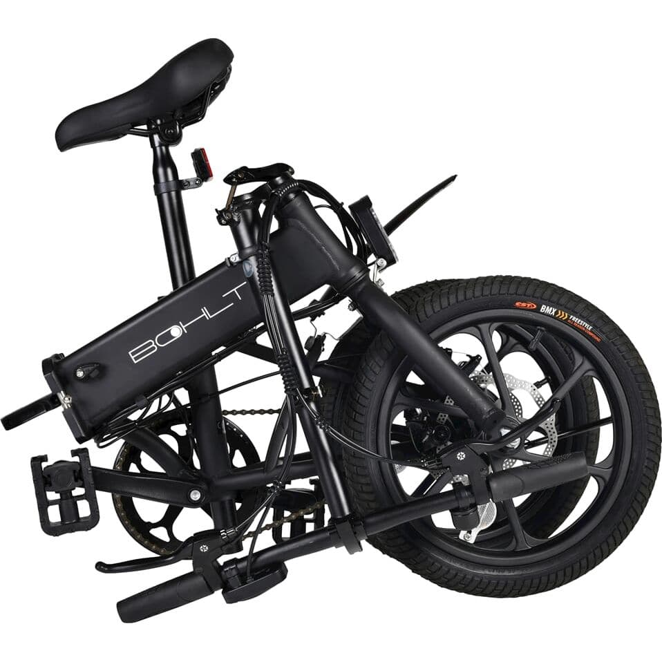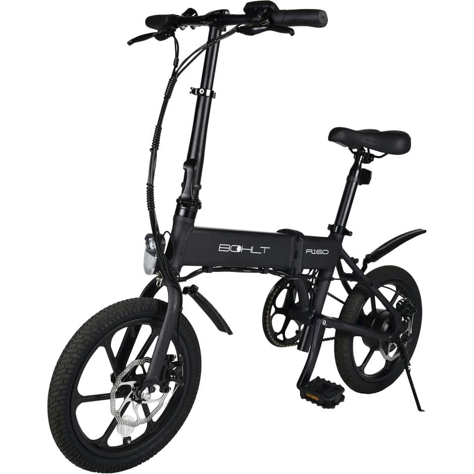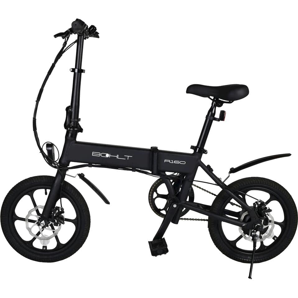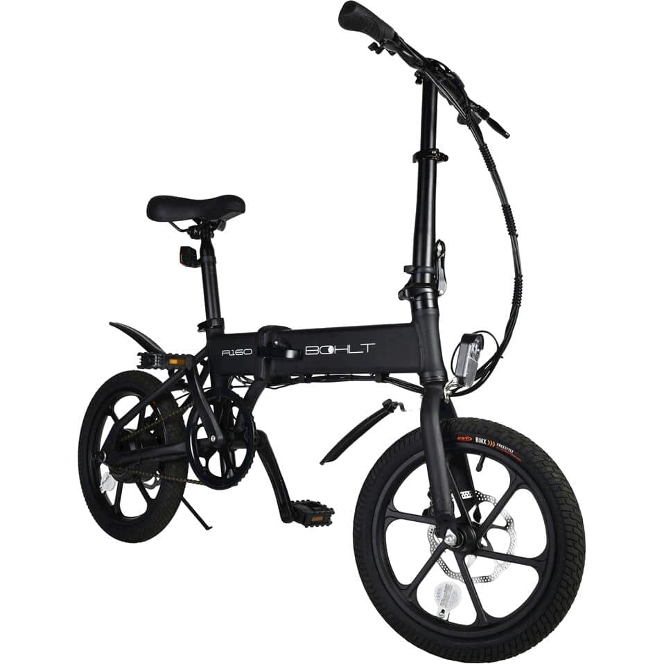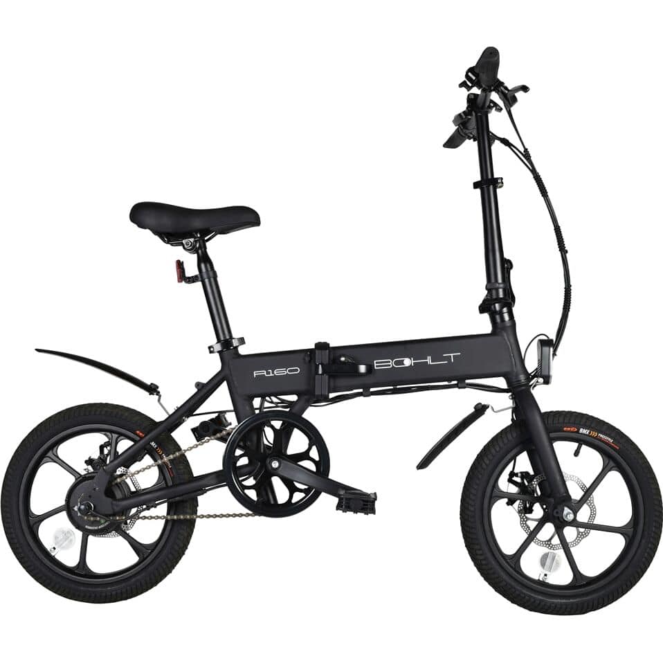 De Bohlt R160 is een compacte elektrische vouwfiets met 16 inch wielen die u snel en gemakkelijk opvouwt. Deze vouwfiets is ideaal om uw laatste kilometers te overbruggen van huis naar werk. Met het gewicht van 17,5 kilo inclusief accu, tilt u hem gemakkelijk de trein of bus in. Ook kan u deze vouwfiets gemakkelijk plaatsen in uw kofferbak. Met de Bohlt R160 kan maximaal 35km gereden worden met een volle accu (stand 1). Wordt geleverd met 1 36V 5,2 Ah LG accu. Volledig opladen van de accu duurt ongeveer 3 tot 4 uur. Maximaal draaggewicht 120kg.