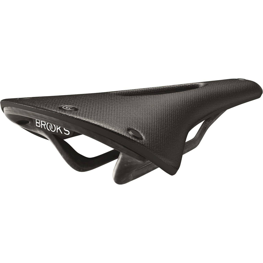 Selle Brooks Cambium All Weather Carved C13, noire, largeur 158 mm, pont simple en carbone, revêtement hydrofuge et sans entretien. Dimensions (L x l x H) : 275 x 158 x 55 cm. Poids : 295 g.