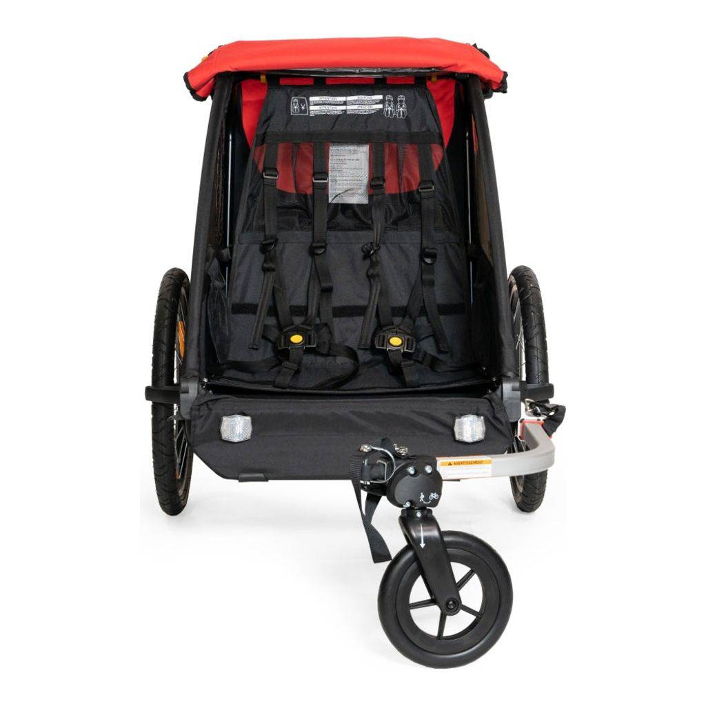 De Burley Honey Bee kan gemakkelijk worden omgebouwd van een lichtgewicht fietskar voor 2 kinderen tot een handige wandelwagen. Ideaal voor iedereen die een oplossing zoekt om zowel met de kinderen te kunnen gaan wandelen, als een mooie fietstocht te maken. Met UV-beschermde ramen, voor- en achterreflectoren en een vijfpuntsgordel systeem neemt de Honey Bee zowel veiligheid als comfort serieus.