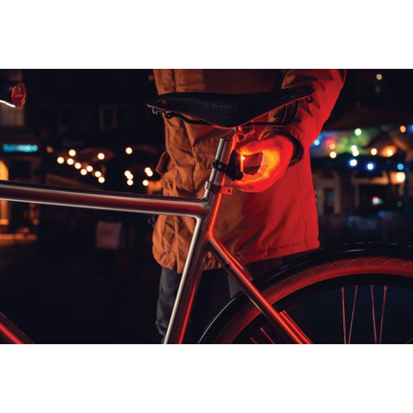 Le Dwn est un feu arrière rechargeable par USB. Grâce à sa sangle de fixation flexible en caoutchouc, il s'adapte à presque tous les vélos. Il peut être monté de deux manières : sur la tige de selle ou sur le hauban. Dans les deux cas, il est facilement démontable. Petit et très puissant, ce feu arrière au design mat se recharge grâce au câble USB-C fourni. Rechargeable, il constitue une alternative durable aux éclairages à batterie traditionnels. La batterie offre jusqu'à 7 heures d'autonomie. Soyez visible jusqu'à 300 mètres.
