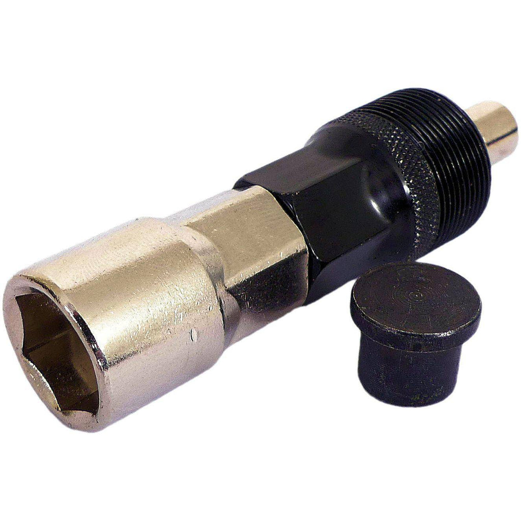 Met de Edge crankafnemer zelf eenvoudig de crankbout en crank (waaraan de pedalen zijn gemonteerd) van de fiets te halen of monteren. Verwijder eerst de borgmoer uit de crank. Draai hierna de cranktrekker voorzichtig in de crankarm om beschadiging van het schroefdraad te voorkomen. Draai vervolgens de binnenste bout van de crank met een steeksleutel richting de trapas. De crank komt zo geleidelijk los van de trapas. Zelf eenvoudig de crankbout en crank van de fiets te halen of monteren Een kant voor het verwijderen van de crankbout Ander kant voor het verwijderen van de crank van de trapas