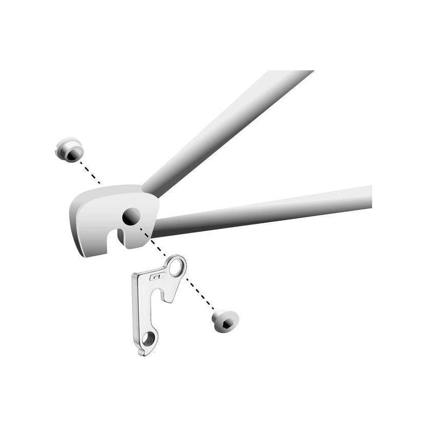 Patte de dérailleur en aluminium, compatible avec les marques de vélos suivantes, entre autres : GT. Matériau : aluminium AL 6061, forgé à froid. Contenu de la livraison : patte de dérailleur avec vis de fixation.