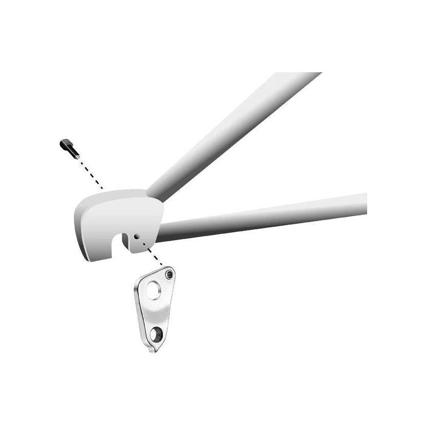 Patte de dérailleur en aluminium, compatible avec les marques de vélos suivantes, entre autres : Specialized. Matériau : aluminium AL 6061, forgé à froid. Contenu de la livraison : patte de dérailleur avec vis de fixation.