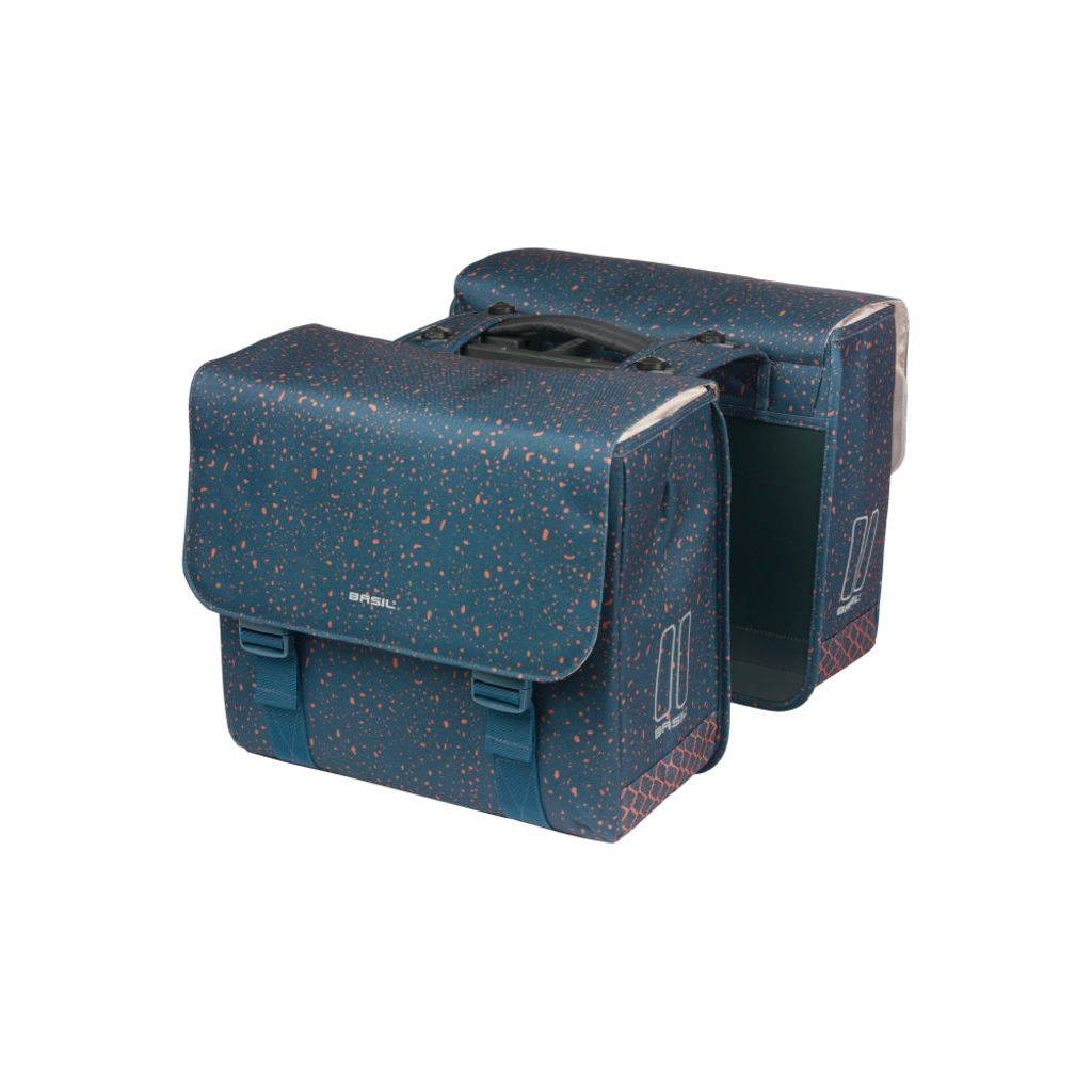 De Basil Flair MIK dubbele fietstas biedt de ideale combinatie van stijl en functionaliteit. Gemaakt van waterafstotend gerecycled polyester en voorzien van een binnenvoering, biedt deze tas optimale bescherming voor essentials. Met het handige aansnoerkoord is de tas veilig af te sluiten. Tevens uitgerust met een MIK Adapterplaat 2.0, waardoor hij eenvoudig te bevestigen is op MIK systeemdragers en de Basil MIK carrierplaat (los verkrijgbaar). Voor extra veiligheid heeft de tas reflectie op alle zijden, om goed zichtbaar te zijn in het verkeer. Perfect voor dagelijkse fietstochten!