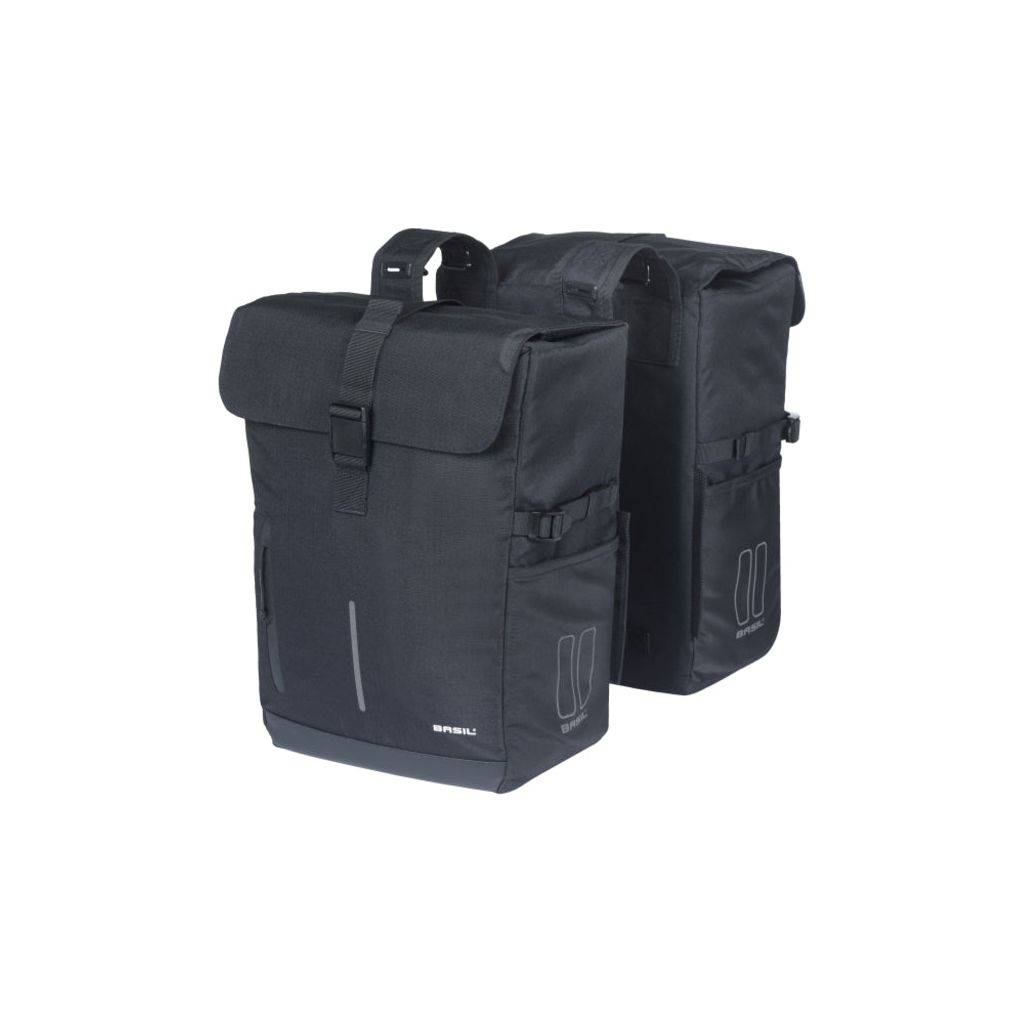 De Basil Move dubbele fietstas is de ideale metgezel voor elke fietstocht. Gemaakt van waterafstotend gerecycled polyester, biedt deze tas elastische zijvakken en extra ritsvakken voor alle essentials. Dankzij het Universal Bridge-systeem is de tas geschikt voor MIK- en Racktime-platen (apart verkrijgbaar). Een meegeleverde regenhoes en reflecterende elementen zorgen voor extra bescherming en veiligheid onderweg. Deze veelzijdige, duurzame fietstas is perfect voor zowel dagelijks gebruik als lange ritten.