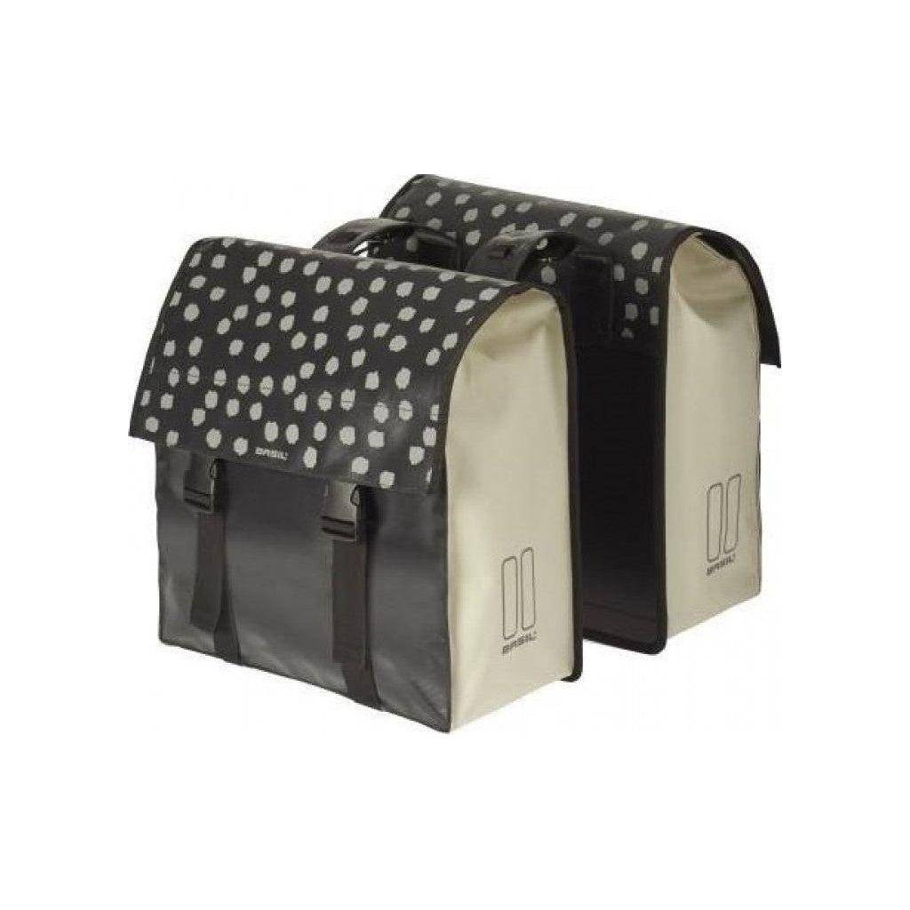 De Basil Urban Load is een regenbestendige dubbele fietstas voor achterop de fiets met het Basil Universal Bridge systeem, heeft een inhoud tot 53 liter en zwart met lichte reflecterende stippen.