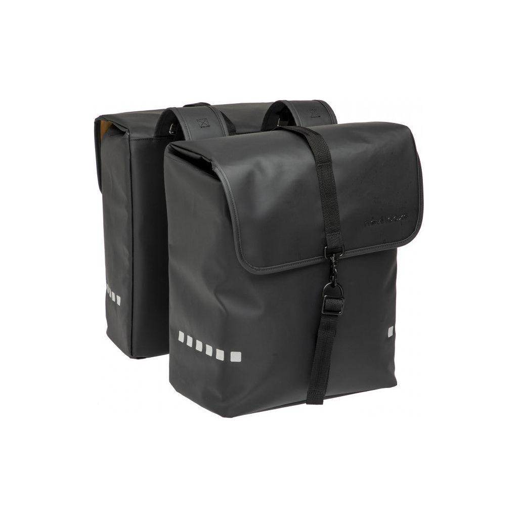De dubbele fietstas Odense is een hele ruime tas die gemaakt is van bijzonder sterk en kwalitatief materiaal. De tas heeft een stoer uiterlijk en veel praktische eigenschappen. Met twee grote hoofdvakken vervoer je veel spullen. Je sluit de tas met een mooie verstelbare haaksluiting. Voor extra veiligheid in het donker is de Odense fietstas afgewerkt met reflectie die vanaf 3 zijden zichtbaar is.