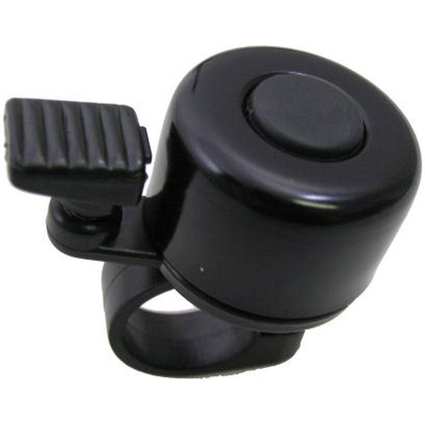 Sonnette de vélo compacte d'un diamètre de 35 millimètres. Spécifications du produit: Matériau de la sonnette: aluminium Matériel de fixation: plastique Diamètre: 35 mm Dimensions: 35 x 50 x 55 mm Diamètre de la pince: 21-25 mm Poids: 20 grammes Couleur: noir
