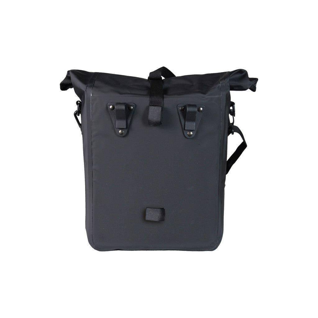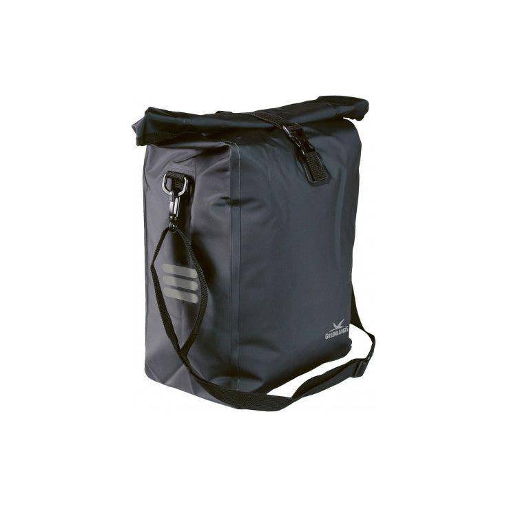 Sacoches étanches Greenlands®. Ces sacoches 100 % étanches sont disponibles en deux versions : 18,5 et 23 litres. Les coutures soudées et la fermeture par enroulement rendent ces sacoches 100 % étanches. Les crochets sont compatibles avec la plupart des porte-bagages et sont faciles à fixer. La bandoulière (amovible) incluse facilite le transport (pour faire les courses). L'imperméabilisation est facile en enroulant le haut et en le fixant avec une boucle à dégagement rapide. Des détails réfléchissants à l'avant et à l'arrière assurent une meilleure visibilité dans la circulation par temps sombre. Cela permet également de fixer les sacoches de chaque côté du porte-bagages. Caractéristiques du produit : Fabriquées en toile extrêmement résistante, elles s'adaptent à la plupart des porte-bagages courants. Éléments réfléchissants pour plus de sécurité dans la circulation. Ouverture et fermeture faciles grâce aux attaches rapides. Fermeture par enroulement pour une étanchéité optimale. Facile à transporter grâce à la bandoulière incluse. Dimensions : 27 x 49 x 14 cm. Volume : ± 18,5 litres. Couleur : noir.