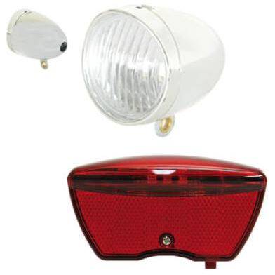 IKZI ensemble d'éclairage rétro, phare à piles chromé et feu arrière/stop à 3 LED, piles incluses.