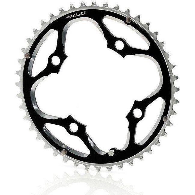 Le plateau XLC CR-A01 est usiné CNC en aluminium, ce qui le rend à la fois extrêmement résistant et léger. Avec un diamètre de perçage de 104 mm, il est disponible en 22, 32 ou 44 dents. Conçu pour les VTT équipés de pédaliers à 4 bras et compatible avec les transmissions 3x9.