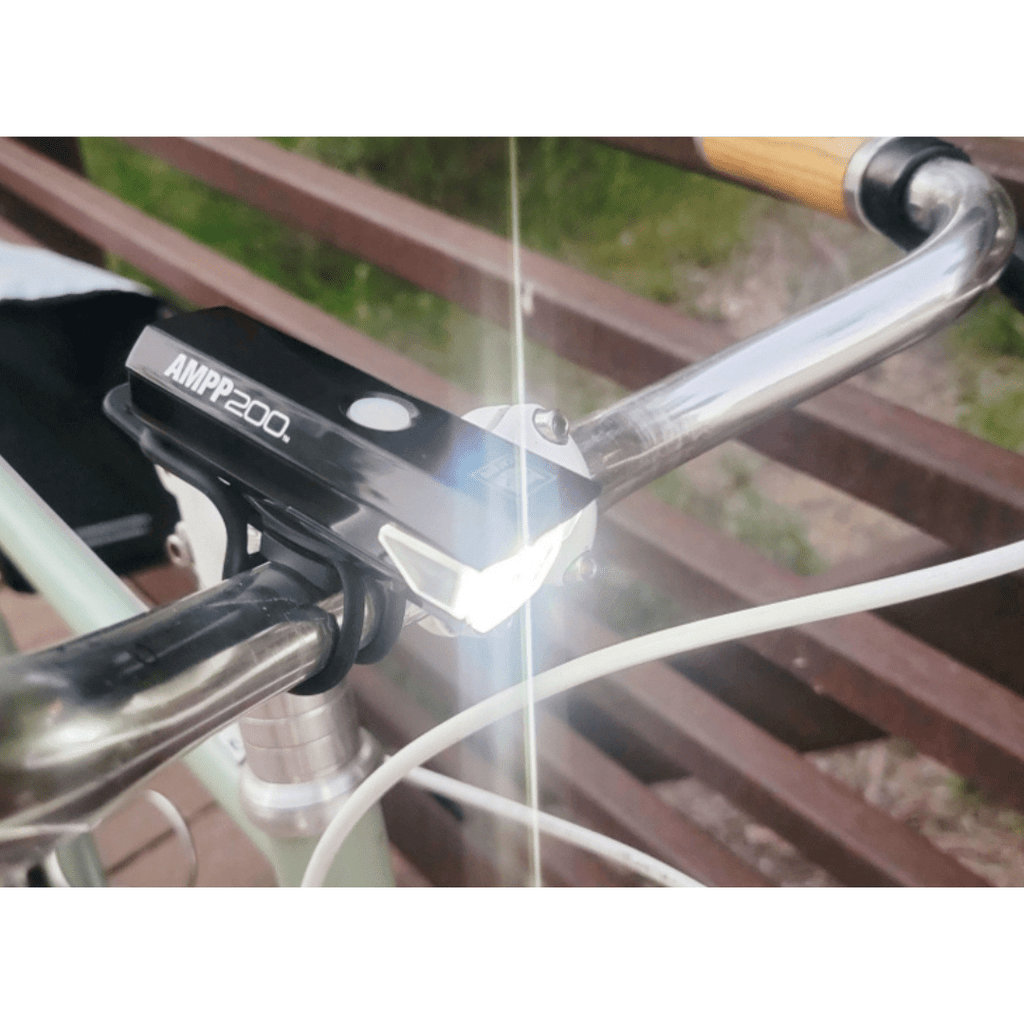 De Cateye AMPP200 is een super praktische oplaadbare lamp van max. 200 lumen. Door zijn lichte en compacte constructie is het een ideale keuze voor zowel de prestatiegerichte wielrenner als de forens. De lichtsterkte van 200 lumen is voldoende om goed zichtbaar te zijn en zelf een beter zicht te hebben op de matig verlichte wegen. De koplamp is oplaadbaar via USB en brand tot circa 13 uur constant of 40 uur in knippermodus op 40 lumen.