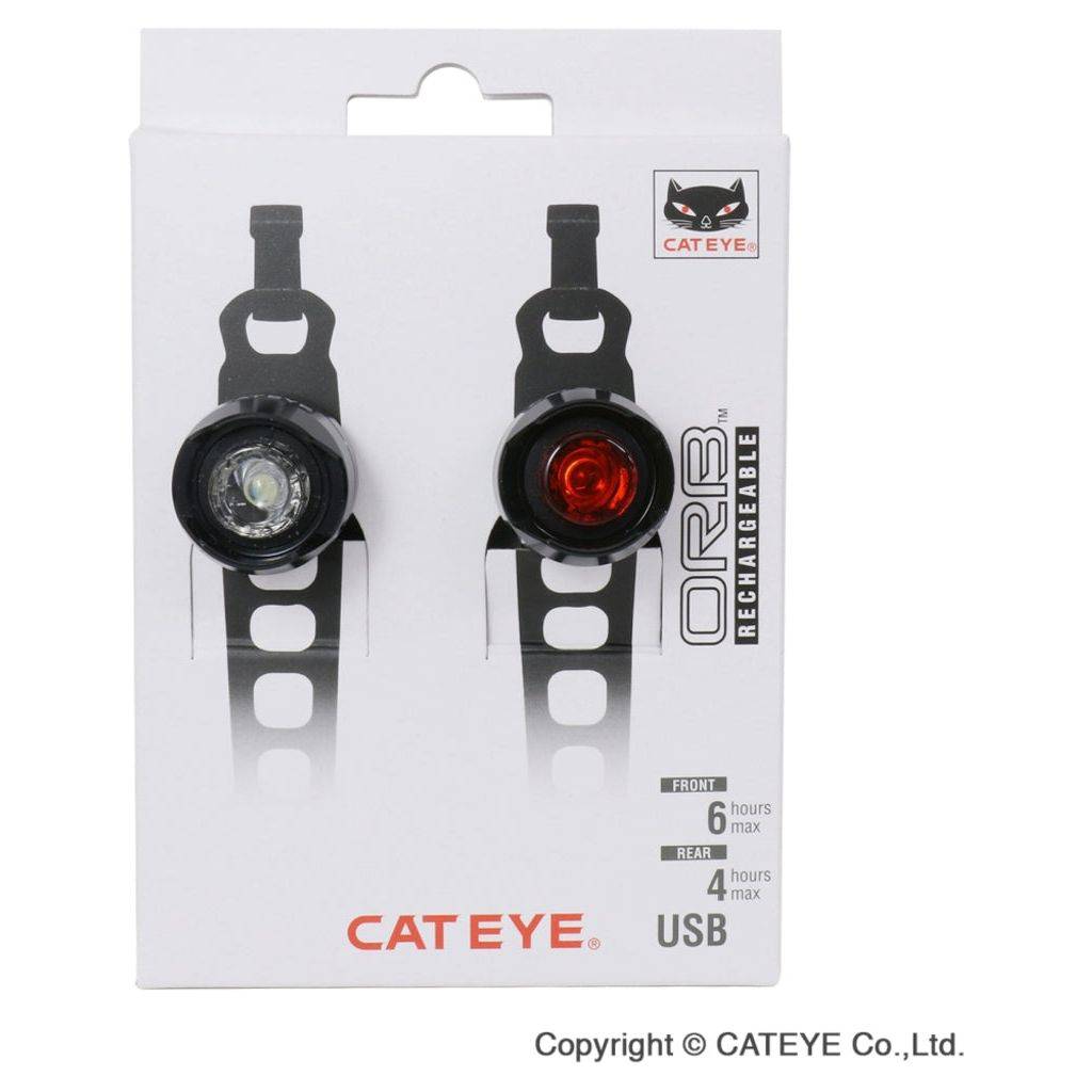 De ORB Lampset met een koplampje en achterlicht is praktisch, compact en licht. Met verschillende knipperstanden helpt de ORB Rechargeable Lampset om gezien te worden op de weg.