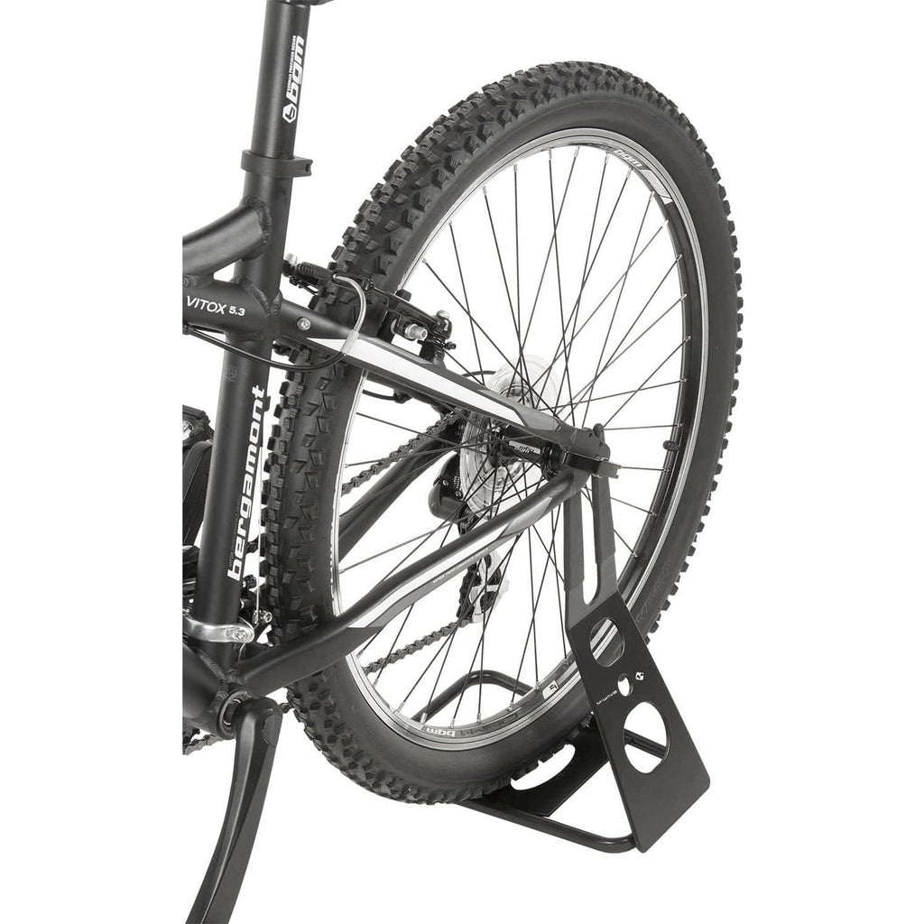 Kleur: zwart Materiaal: staal Geschikt voor wielmaat: 12 tot 29 inch Afmetingen: 30 x 20 x 40 cm (LxBxH) Breedte opening: ca. 25 mm Met rubberen bescherming tegen krassen. Stabiel, niet opvouwbaar. Te gebruiken op de voor en achter as. Ook te gebruiken voor fietsen met schijfremmen.