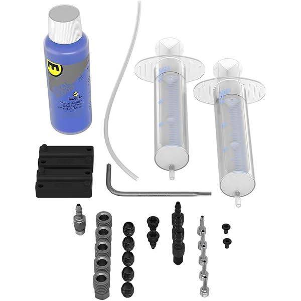 Het is mogelijk dat er ook andere componenten of accessoires zijn inbegrepen in de kit, zoals ontluchtingsnippels, slangen en instructies voor het uitvoeren van het ontluchtingsproces. Het is belangrijk om de specifieke instructies van de fabrikant te volgen bij het ontluchten van Magura remsystemen om ervoor te zorgen dat dit correct en veilig wordt uitgevoerd.