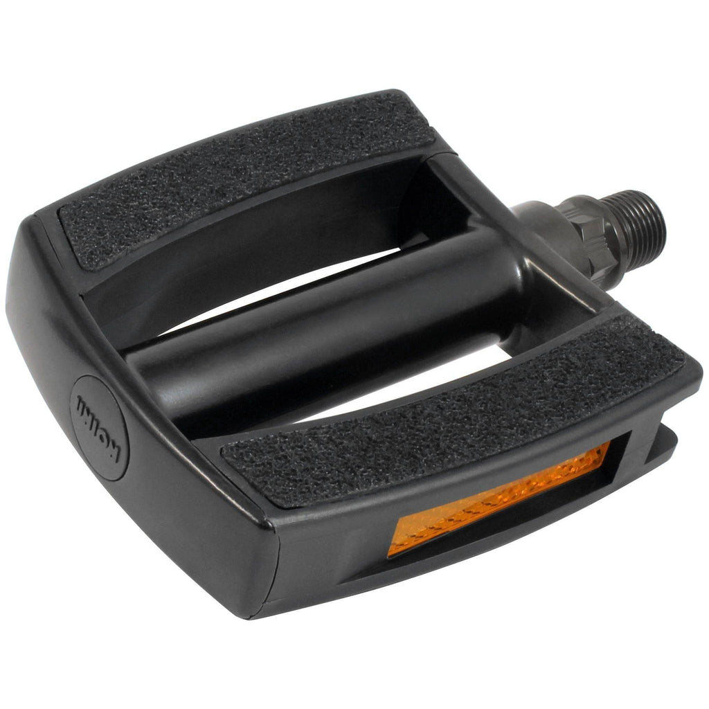 Een fietspedaal met aan beide kanten een "antislip" inzet van gepatenteerd SANDBLOCK® materiaal, een duurzaam Polypropyleen ashuis en kooi, speciaal ontworpen voor het gebruik op elektrische fietsen. Ook te gebruiken op stads-, trekking- en hybridefietsen. Functies: Het "lichtgewicht" kogellager systeem geeft een aanzienlijke besparing in gewicht en hoogte De pedalen zijn elk aan twee kanten voorzien van geïntegreerde goedgekeurde reflectoren en een gesloten lagersysteem Type pedaal "3 componenten pedaal", dat bestaat uit: een gegoten aluminium ashuis, glanzend kogelgepolijst of zwart (electro dyed black) de kooi van het pedaal is gemaakt van zwart polypropyleen de extra grote "antislip" inzet in de kooi is gemaakt van een grijs TPE (thermo-plastic-elastomeer). Kogellager Verstelbaar en lichtgewicht kogellager system, volgens het "kogel & kegel" principe, aan beide zijden Met 13 x 3/32" gelagerde kogels aan beide zijden As Boron staal, door middel van een hitte behandeling gehard tot 75HRA (+/-3) Met 9/16"- 20 TPI draad Reflectoren Geïntegreerd in kooi van het pedaal Goedgekeurd volgens BS, JIS, TPP, alsmede volgens de Duitse StVZO normen Afmetingen 111* x 90 x 27 mm (*lengte x breedte x hoogte) *lengte = maximale lengte pedaal gemonteerd (deel wat uitsteekt buiten het trapstel) Gewicht 516 gr/per stel Normering Het pedaal voldoet aan de ISO normering. ISO 4210-8: "Fietsen-Veiligheidseisen voor fietsen- Testmethoden voor pedaal en trapstel" SANDBLOCK Sandblock® is het officiële door Marwi geregistreerde beeldmerk van een gepatenteerde samenstelling van materialen dat een slijtvaste perfecte anti-slip inzet vormt voor pedalen. De anti-slip werking van het materiaal is gegarandeerd, ook wanneer het nat of besmeurd is met olie of vet. Deze anti-slip inzet is door een speciale, watervaste technologie niet van het pedaal te scheiden. De UNION SANDBLOCK® pedalen hebben een extra grote anti-slip inzet (dus meer direct contact met de schoen van de fietser) en zijn speciaal ontworpen voor de toepassing op E-Bikes. De voordelen van deze hoogwaardige SANDBLOCK® anti-slip inzet zijn: Een zeer goede anti-slip functie, veel beter dan die van de gebruikelijke TPR (rubber) inzet Belangrijk meer slijtvastheid vergeleken met die van de gebruikelijke TPR (rubber) inzet De anti-slip functie blijft optimaal, zelfs wanneer de oppervlakte van het materiaal nat of besmeurd is met olie of vet De SANDBLOCK® anti-slip vlakken zijn zeer slijtvast, waterbestendig en stevig verbonden met de robuuste polypropyleen kooi van het pedaal via een nieuwe gepatenteerde technologie. Vergeleken met de zelfklevende schuurpapier versies van pedalen welke gebruikt worden, is deze sterke verbinding watervast en niet te scheiden of verwijderen van het pedaal. Technische details en test resultaten: Diverse laboratorium testen bewijzen dat het SANDBLOCK® niet gescheiden of verwijderd kan worden van de kooi van het pedaal, zelfs niet wanneer hiervoor gereedschap wordt gebruikt De anti-slip functie van het SANDBLOCK® heeft veel betere prestaties dan het standaard anti-slip materiaal dat gemaakt is van schuurpapier Een anti-slip duurzaamheid test laat zien dat met een belasting van 30 kg en bij 10.000 cycli, het materiaal slechts 0.25 mm afslijt Bij een inzet van standaard schuurpapier toont dit al slijtage sporen na 20 cycli. SANDBLOCK® doet dit niet De inzet van standaard schuurpapier laat zich heel gemakkelijk scheiden van de polypropyleen kooi van het pedaal. Bij SANDBLOCK® gebeurt dit niet Door het SANDBLOCK® materiaal toe te passen in plaats van TPR of standaard schuurpapier wordt met deze UNION pedalen een nog hogere mate van veiligheid voor de fietser bereikt in alle weersomstandigheden.