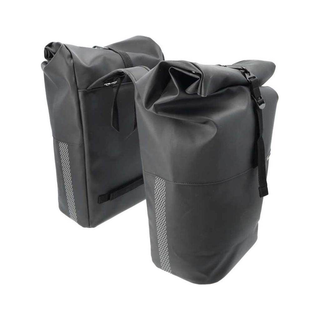 De New Looxs Nyborg Double is een ruime dubbele fietstas met een modieus design, gemaakt van waterdicht en sterk 500D polyester met TPU coating. De fietstassen bieden voldoende opbergruimte met twee grote hoofdvakken en een extra A4-formaat ritsvak. Het ontwerp is zowel stijlvol als functioneel, met een handige gespsluiting en drukknopen om de roltop goed gesloten te houden. Reflecterende elementen zorgen voor zichtbaarheid in het donker. De fietstassen worden eenvoudig bevestigd met riempjes en zijn geschikt voor vrijwel alle fietsen, inclusief elektrische fietsen. Het waterafstotende en stevige materiaal zorgt ervoor dat je spullen droog blijven, en optioneel is een New Looxs regenhoes voor 100% waterdichtheid beschikbaar.
