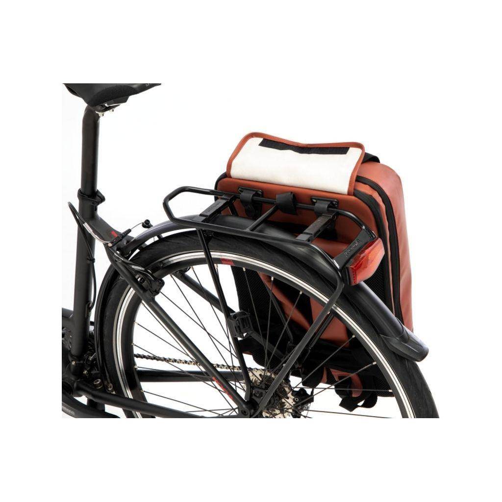 De New Looxs Nevada Backpack is een veelzijdige fietsrugzak, ideaal voor woon-werkverkeer, studie of avontuurlijke trips. Met een 17-inch laptopvak en handige opbergmogelijkheden voldoet deze rugzak aan de behoeften van moderne fietsers. De tas is eenvoudig afneembaar en biedt voldoende ruimte, inclusief een dik gevoerd insteekvak voor een tablet en een elastisch vak voor een drinkfles. De New Looxs kunststof haken maken veilige bevestiging aan vrijwel alle fietsen mogelijk, inclusief elektrische fietsen. De tas kan worden omgevormd van een fietstas naar een rugzak en heeft reflecterende details voor extra zichtbaarheid. Gemaakt van waterafstotend en duurzaam materiaal, wordt extra bescherming geboden door de bijgeleverde regenhoes.