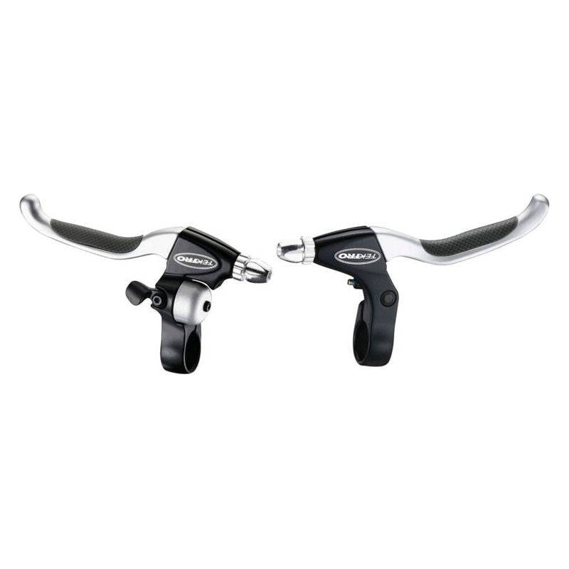 Remhendelpaar Tektro CL530TS+CL535RT V-brake met geïntegreerde fietsbel - zwart/satijn Merk: Tektro Model: CL530TS+CL535RT Type rem: V-Brake Stuur diameter: ø22,2 mm met geïntegreerde fietsbel Links/rechts/set: set Materiaal: aluminium Kleur: zwart/zilver