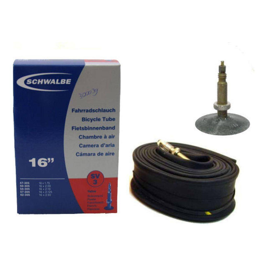 Spécifications du produit : Type de valve : Française / Presta / Sclaverand Longueur de la valve : 40 millimètres Poids : 115 grammes Dimensions des pneus : 47-305 - 16 x 1.75 50-305 - 16 x 2.00 54-305 - 16 x 2.10 57-305 - 16 x 2.125 62-305 - 16 x 2.50 47-305 - 16 x 1.90