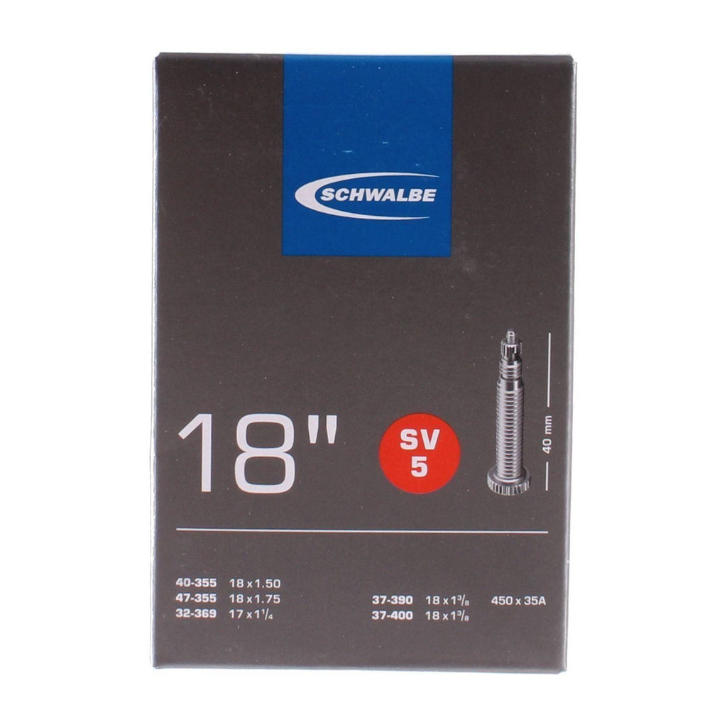 Caractéristiques du produit : Type de valve : Presta / French Longueur de la valve : 40 millimètres Poids : 95 grammes Tailles des pneus : 32-369 - 17 x 1 1/4 37-390 - 18 x 1 3/8 - 450 x 35A 37-400 - 18 x 1 3/8 44-355 - 18 x 1.65 42-355 - 18 x 1.60 47-355 - 18 x 1.90 40-355 - 18 x 1.50 47-355 - 18 x 1.75