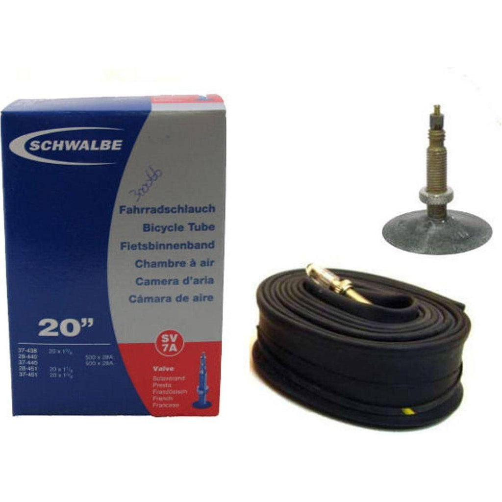 Caractéristiques du produit : Type de valve : Française / Presta / Sclaverand Longueur de la valve : 40 millimètres Poids : 105 grammes Tailles des pneus : 37-438 - 20 x 1 3/8 28-440 - 500 x 28A 37-440 - 500 x 35A 28-451 - 20 x 1 1/8 37-451 - 20 x 1 3/8