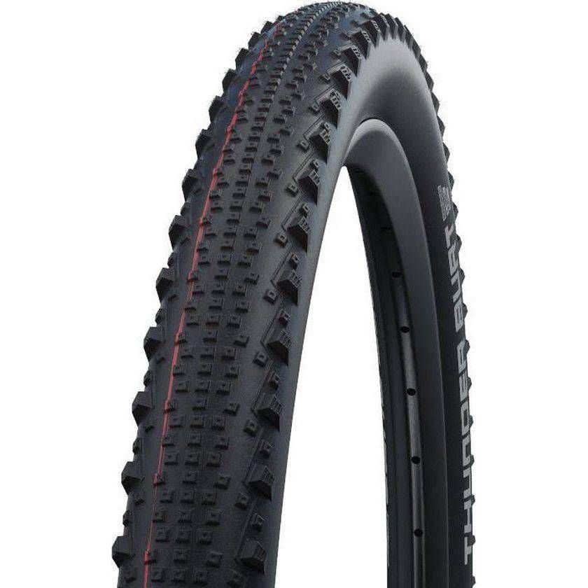 Le Schwalbe Thunder Burt est un excellent pneu pour les pistes de cross-country rapides et sèches. Doté de nombreux petits crampons plats pour un roulement rapide et silencieux, et de nombreux bords adhérents spécialement conçus pour les surfaces dures. Les crampons latéraux anguleux offrent un bon contrôle en courbe et une excellente adhérence. Le Thunder Burt convainc par son faible poids et son roulement extrêmement faible – le pneu de VTT le plus rapide de Schwalbe.