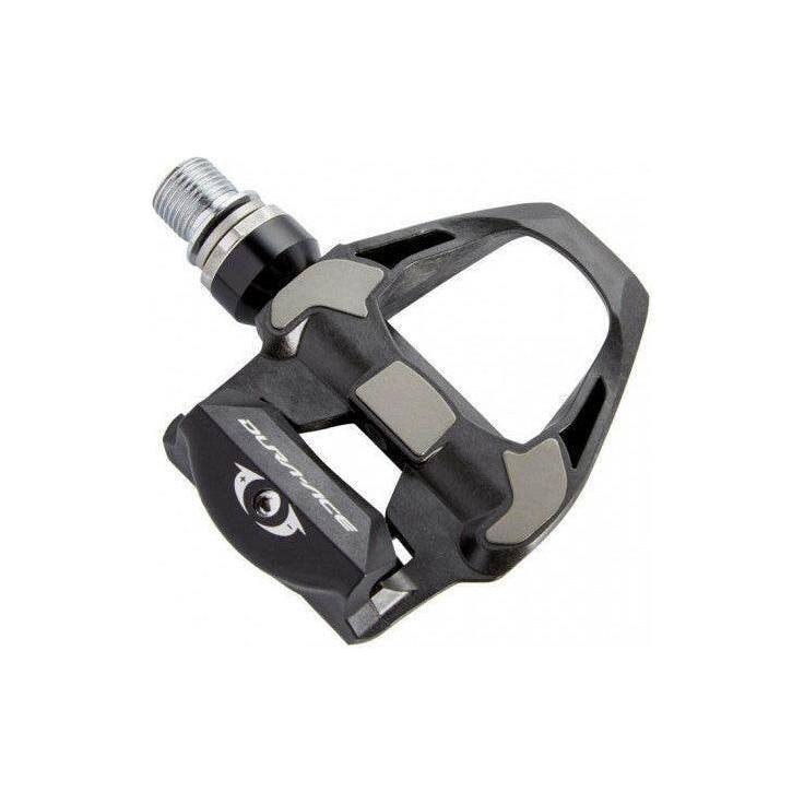 Pédales Shimano Dura Ace PD-9100 SPD-SL Race avec un corps large et une grande surface de contact pour un contact parfait entre le cycliste et le vélo. Corps en carbone très rigide et léger, et axes en acier résistants à l'usure ! La plaque de corps en acier inoxydable durable réduit la flexion et l'usure du corps de pédale. Ces pédales garantissent une efficacité de pédalage maximale et une puissance élevée.