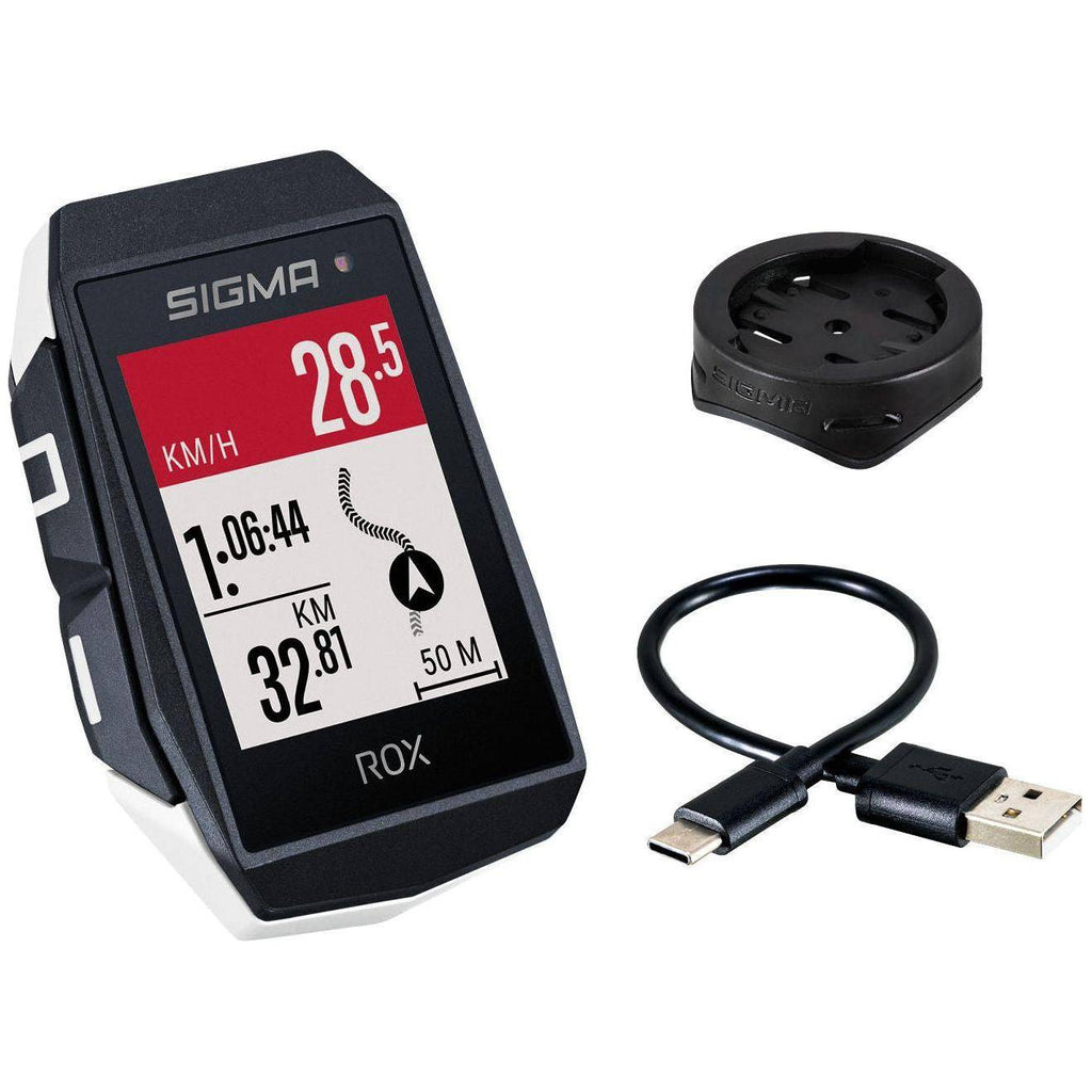 Compteur de vélo GPS Sigma Rox 11.1 Evo avec support de guidon standard - Blanc