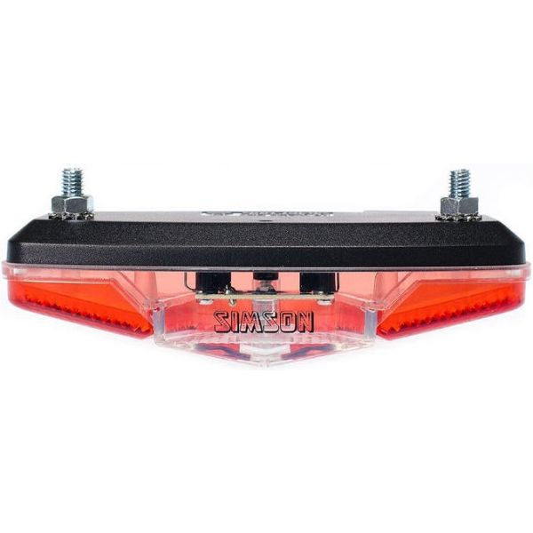 Ce feu arrière Simson à piles pour porte-bagages, le « Coast », est un feu arrière haut de gamme. Il fait partie de la gamme Simson Premium, qui propose des produits d'une qualité exceptionnelle. Sa LED rouge à haute efficacité énergétique offre jusqu'à 100 heures d'autonomie. Ce feu arrière robuste avec réflecteur intégré offre une excellente visibilité, même sur les côtés du vélo. Résistant aux éclaboussures et à la pluie, il est doté de points de fixation de 80 mm. Il est équipé d'un bouton marche/arrêt. Piles incluses : 2 x AAA.