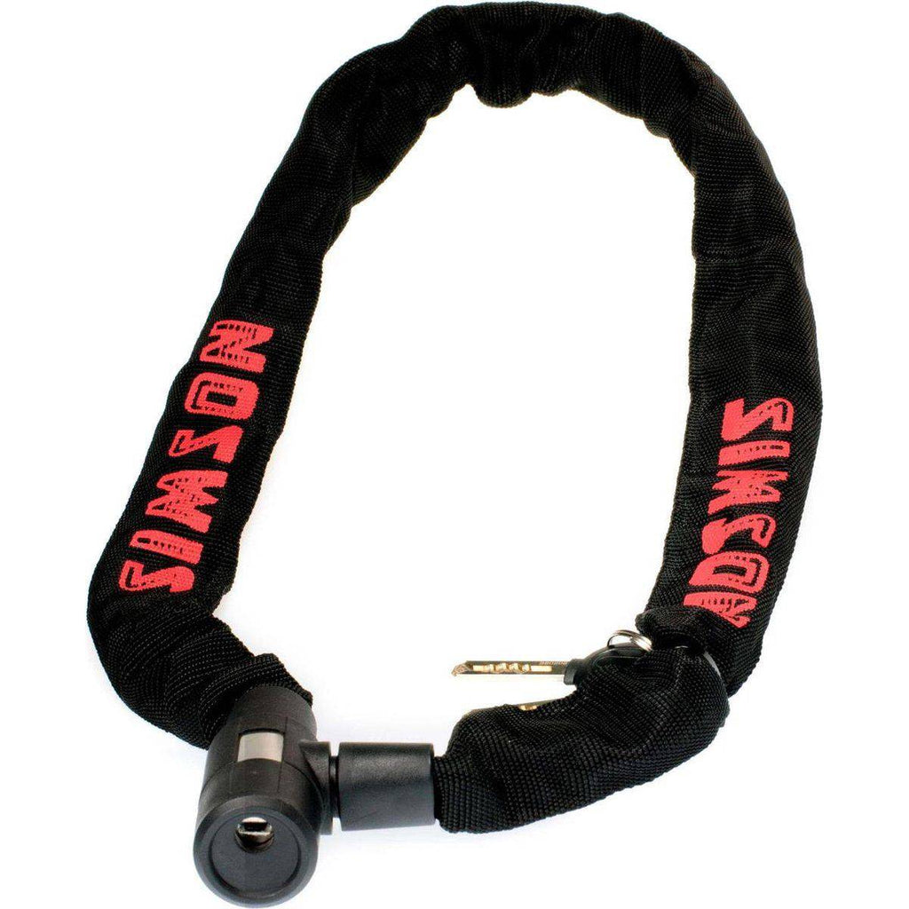 Het Simson Kettingslot Entry is een zeer licht en compact zwart kettingslot met een gewicht van nog geen 600 gram en een textielhoes om beschadigingen aan het frame te voorkomen. Met een dikte van 6mm en een lengte van 90 cm is het kettingslot compact en eenvoudig mee te nemen. Het geïntegreerde slot zorgt voor optimaal gebruiksgemak om de fiets veilig op slot te kunnen zetten. Het slot wordt geleverd met twee sleutels.