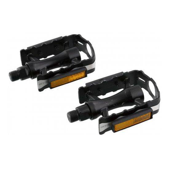De Simson Pedalen Sport de luxe zijn met name geschikt voor mountainbikes en ATB fietsen maar ook voor de E-bike en tourfiets. De stevige en luxe aluminium pedalen, vervaardigd uit één stuk aluminium, hebben een grof profiel voor optimale grip. De pedalen hebben een luxe uitvoering in duo color zwart-zilver en zijn voorzien van reflectoren. Productspecificaties: Vervaardigd uit één stuk aluminium Grof profiel Mountainbikes en ATB