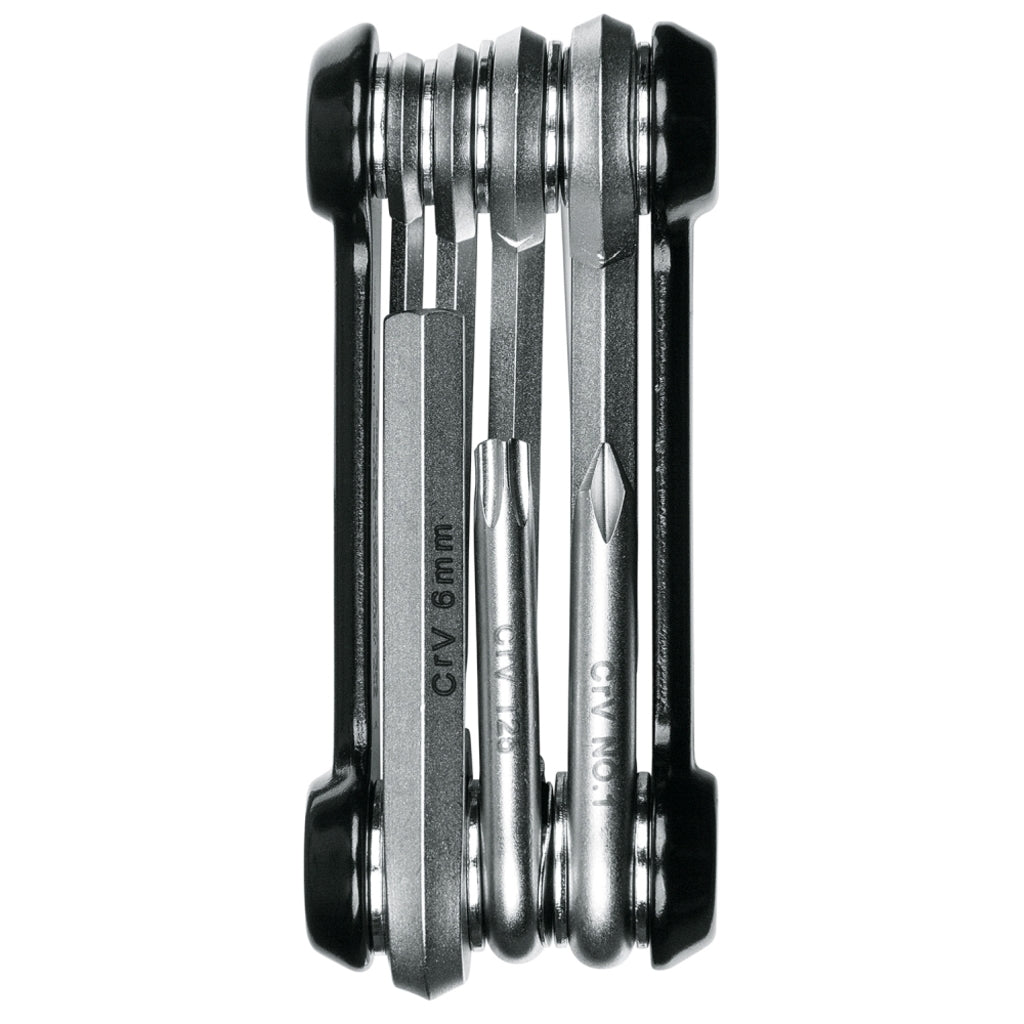 Ce mini-outil métallique fin combine les fonctions d'outils les plus importantes dans un format extrêmement compact. Grâce à ses 7 fonctions intégrées, de nombreuses pannes peuvent être rapidement résolues. Ces 7 fonctions comprennent des clés hexagonales de 2/3/4/5/6 mm, une clé Torx 25 et un tournevis cruciforme. Un étui en néoprène pratique est également inclus.