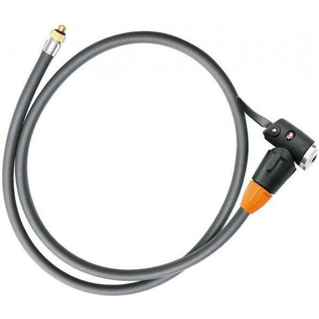 Deze SKS-pomp is uitgerust met een slang en een EVA-kop, wat staat voor Ethyleen Vinyl Acetaat, een elastomeer met uitstekende eigenschappen voor het afdichten van ventielen. De pomp is geschikt voor diverse toepassingen en kan worden gebruikt voor het oppompen van fietsbanden en andere opblaasbare voorwerpen zoals luchtbedden, ballen en meer.