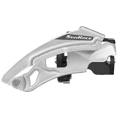 3 x 7/8 speed Top Swing Aluminium huis en klem Verchroomde kettinggeleider Dual pull Geschikt voor diverse framebuisdiameters: 34,9 / 31,8 / 28,6 millimeter Geschikt voor 42-32-22T / 48-38-28 tands crankstellen