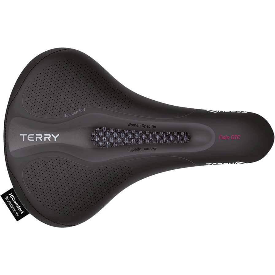 Selle Terry Fisio GTC gel Dames noir, Comfortgel, largeur d'assise 10-13cm, Confort Touring équipée d'un support pour sacoches QuickClick