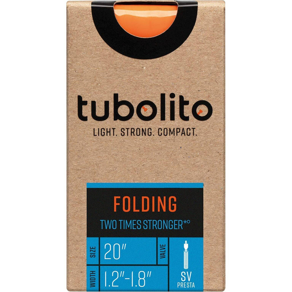 Tubolito binnenband Tubo-Foldingbike-20-SV 2x zo robuust (lekbestendig) als een rubberen binnenband, GEWICHT 44GRAM! Zeer compact op te rollen, eenvoudig om mee te nemen als reserveband.LET OP: Indien de Tubolito niet in de buitenband is geassembleerd, is de maximale druk 0.5 bar. Dit ivm eventuele plastische vervorming van het materiaal (rekt teveel uit).