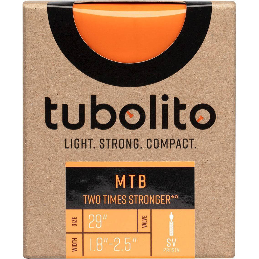 Tubolito binnenband Tubo Mountainbike, 29 Inch, 1.8/2.5-622, 42mm presta ventiel, Voor bandbreedte 1.8 - 2.5 Inch, 2x zo robuust (lekbestendig) als een standaard rubberen binnenband, GEWICHT 85 GRAM! Zeer compact op te rollen, eenvoudig om mee te nemen als reserveband. 33000002. LET OP: Indien de Tubolito niet in de buitenband is geassembleerd, is de maximale druk 0.5 bar. Dit ivm eventuele plastische vervorming van het materiaal (rekt teveel uit). Niet geschikt voor velgrem!